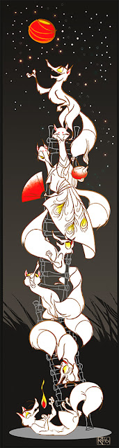 A little-known species of folkloric dragon from the Alpine regions of Europe, the Tatzelwurm was often reported to have the body of a serpent and the torso, claws and head of a feline. I remember seeing an illustration of one in the Reader's Digest 'Unexplained' book when I was about 8, and always thought they were kinda cool, so this is my own take on a few worldwide varieties (including the 'domestic tabby wurm', the laziest of all).